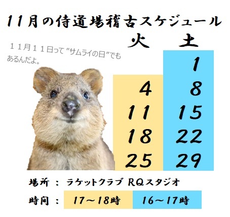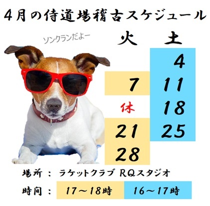 稽古時間は平日金曜日は17時~18時、土曜日は16時~17時。